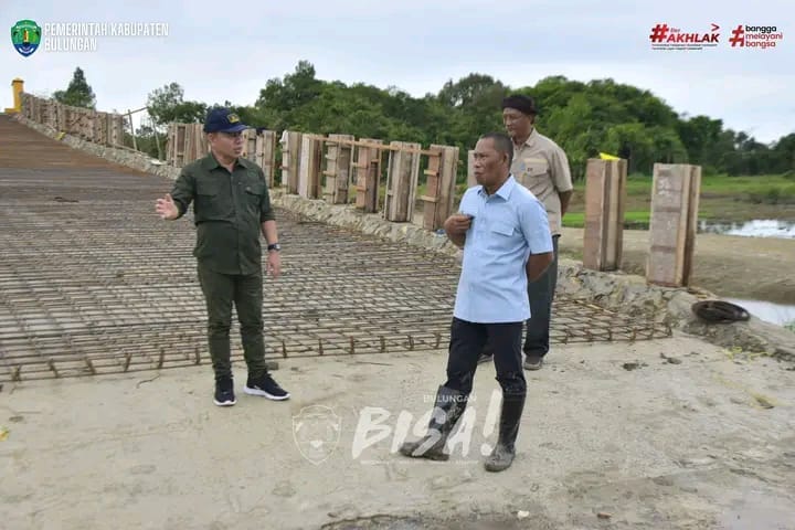 SKI, Salimbatu – Bupati Bulungan, Syarwani, S.Pd, M.Si, dan Ketua DPRD, H Riyanto, S.Sos, meninjau progress pembangunan Jembatan Sei Bayan II Terusan Salimbatu di ruas jalan Tanjung Palas – Salimbatu pada Minggu (7/12).